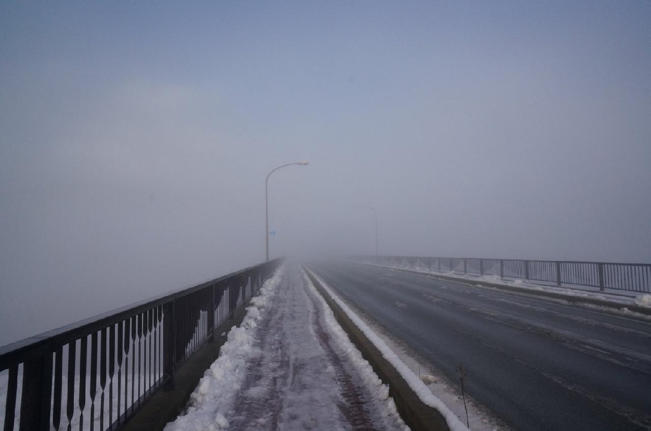 霧の粟佐橋 粟佐より稲荷山方面を見たところ(2014/12/21)