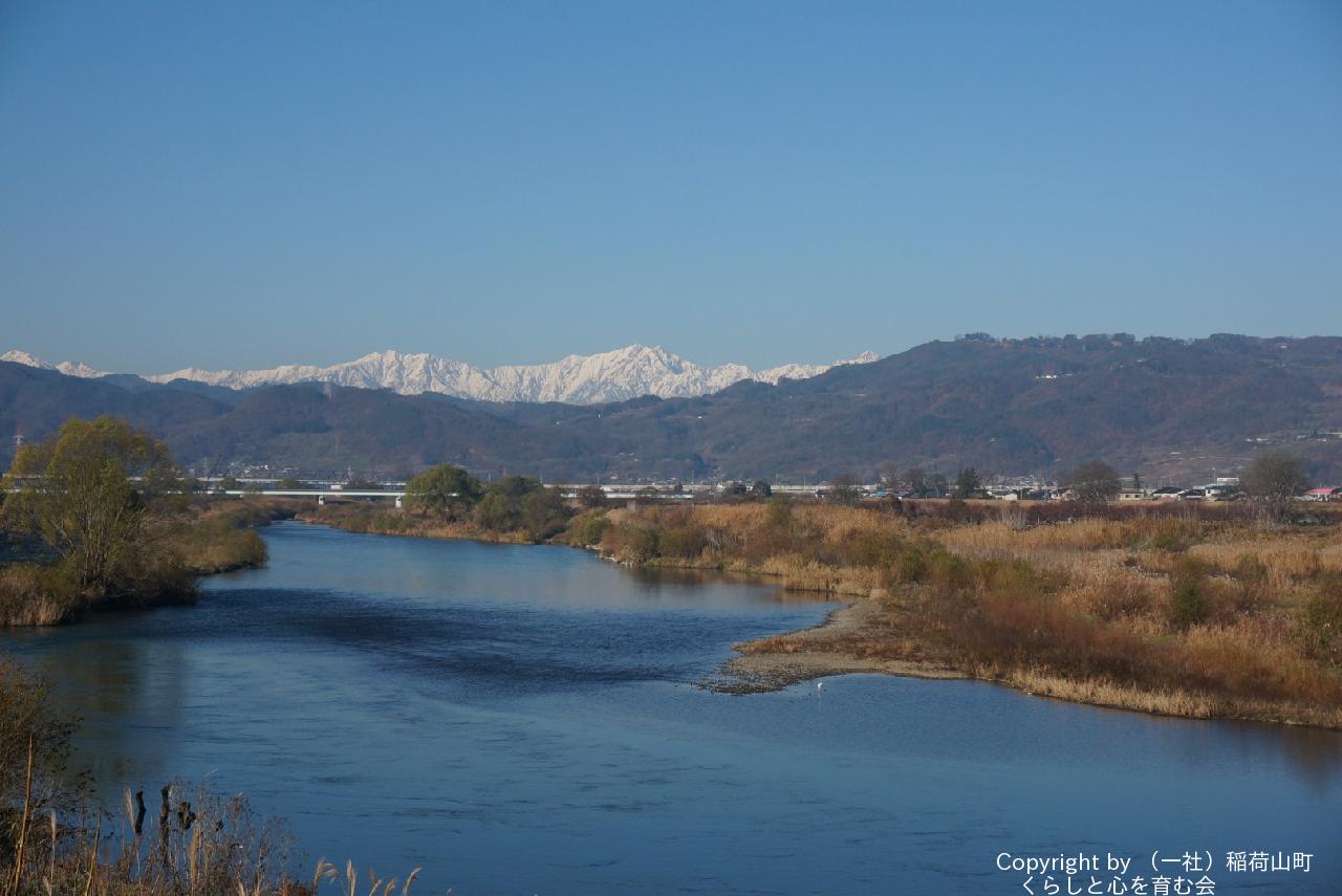 冬の青空と千曲川と北アルプス(2015/12/9)