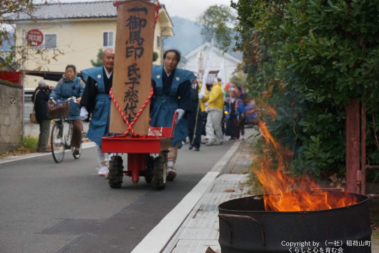 大頭祭 一番頭 豆がらを燃やして行列を迎えている沿道の家 平成27年(2015/12/10)