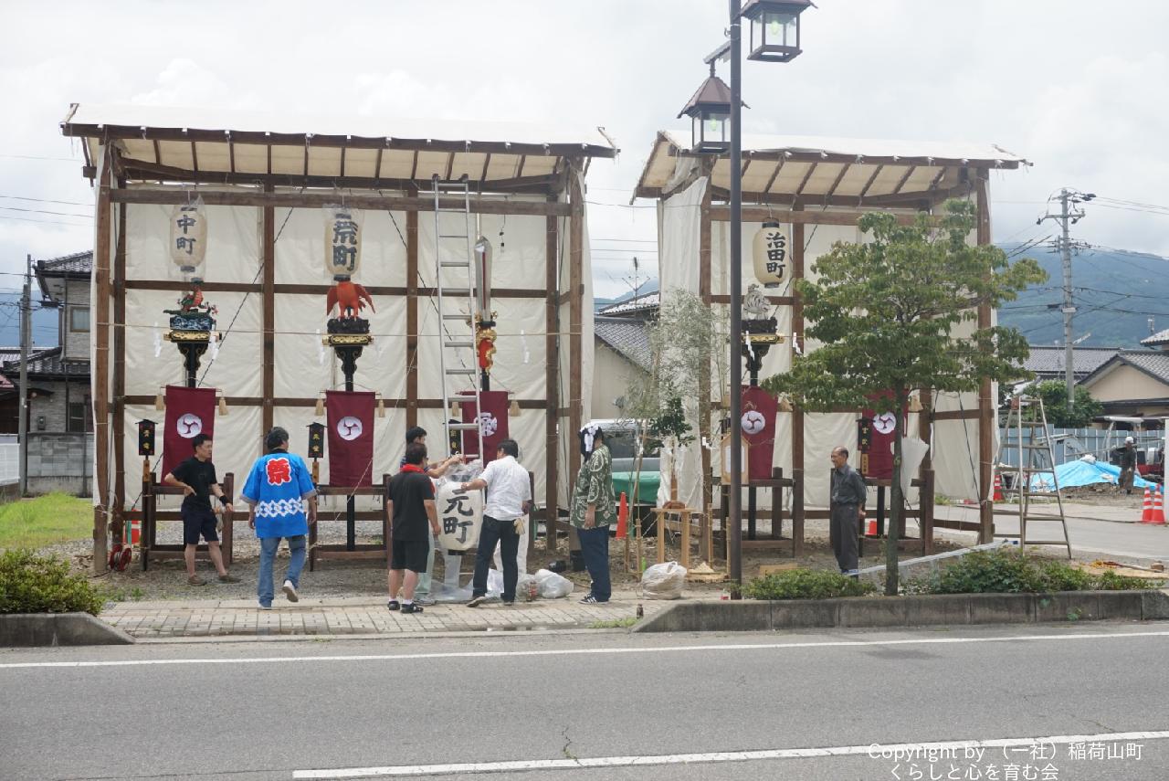 稲荷山祇園祭 北信唯一の四神の展示準備中 あいにー南(2016/7/15)