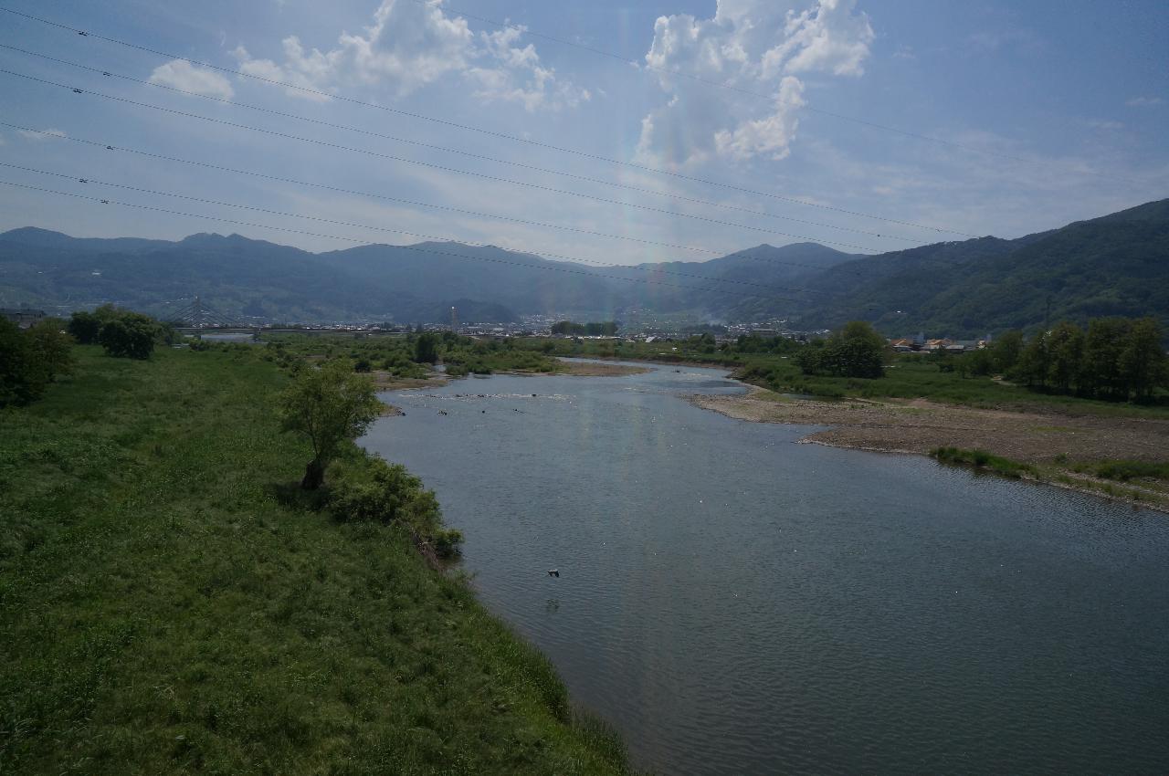 千曲川に掛かる粟佐橋から千曲橋をのぞむ(2014/5/30)