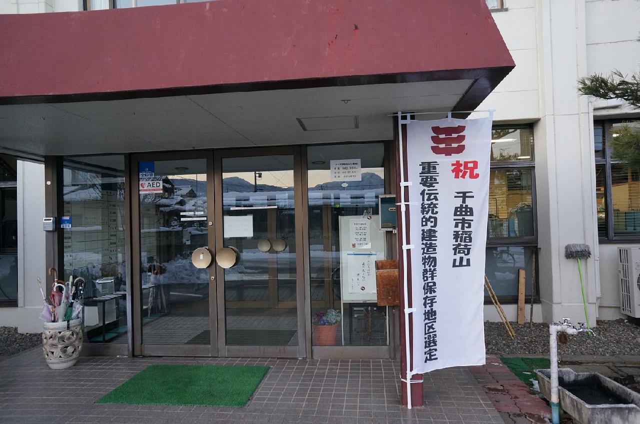千曲市稲荷山 重要伝統的建造物郡保存地区選定の幟旗 稲荷山公民館(2014/12/19)