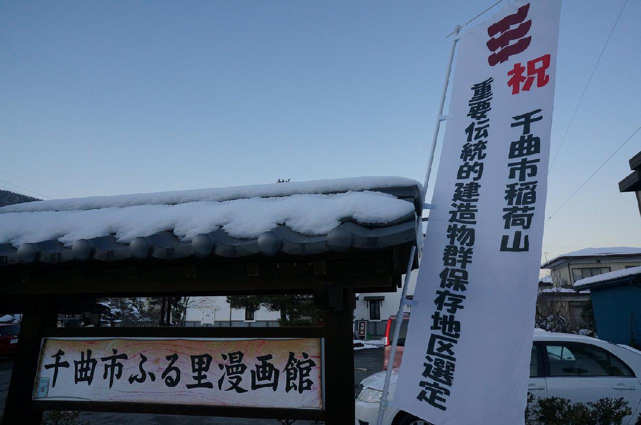 千曲市稲荷山 重要伝統的建造物郡保存地区選定の幟旗 ふる里漫画館(2014/12/19)